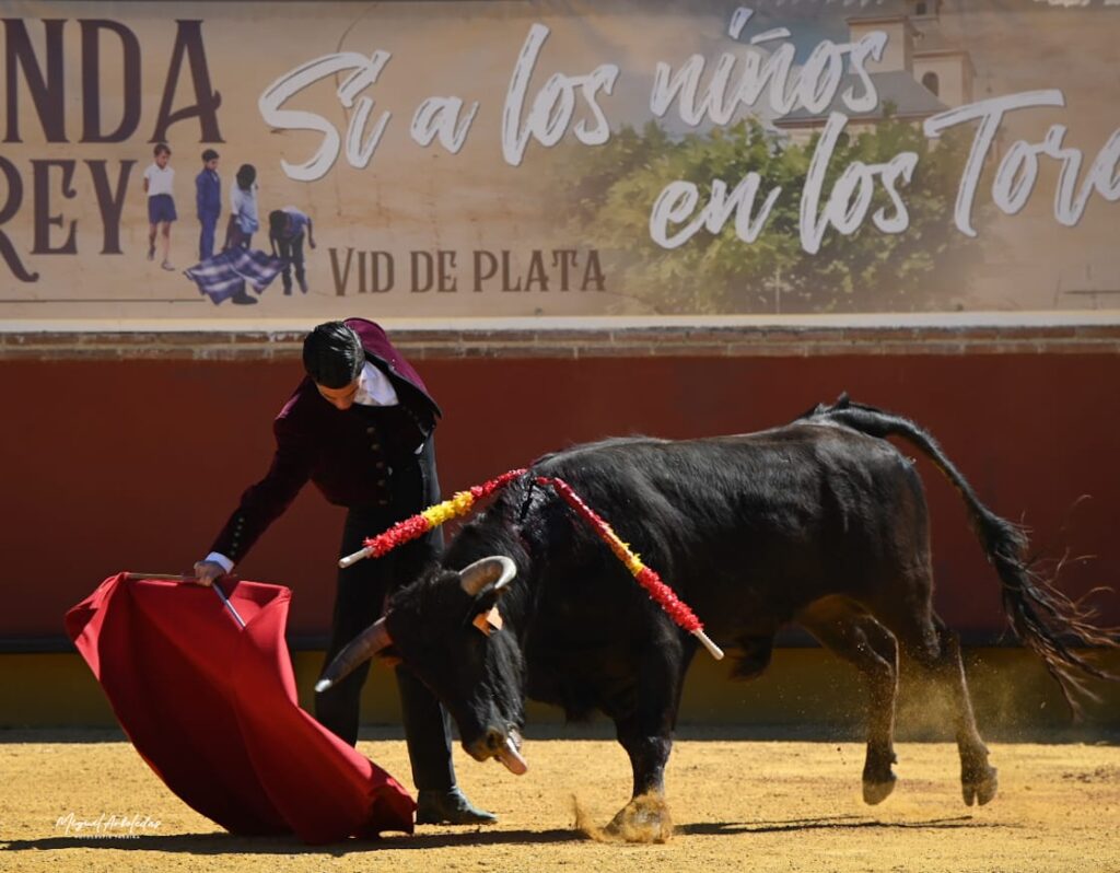 Los jóvenes alumnos de la Escuela El Juli de la Fundación Cultural El Legado también tuvieron ocasión de actuar, fuera de concurso, ante una becerra.